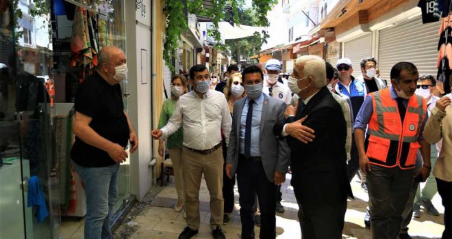 Muğla Büyükşehir Belediye Başkanı Dr. Osman Gürün ve Bodrum Belediye Başkanı Ahmet Aras Bodrum’da esnaf ziyaretinde bulundu. Başkanlar esnafla sohbet edip hayırlı işler dileklerinde bulundu. Sosyal mesafe kurallarına uyularak yapılan ziyarette Muğla Büyükşehir Belediye Başkanı Dr. Osman Gürün “ 1 Haziran itibariyle yeni normalleşme sürecine girdik. Pandemi dünyada olduğu gibi ülkemizde de devam etmekte. Normalleşme sürecinde rehavete kapılmamamız gerekiyor. Üç kurala uyalım. Hijyen, maske ve sosyal mesafe. Kurallara uyduğumuz takdirde pandemisiz güzel günleri yeniden hep birlikte yaşayacağız” dedi.
