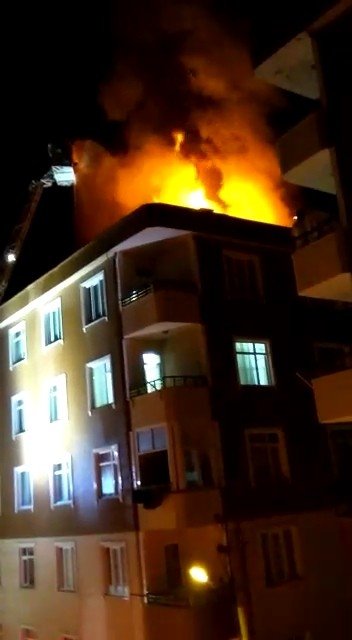 6 Katlı Binanın Çatısı Alev Alev Yandı