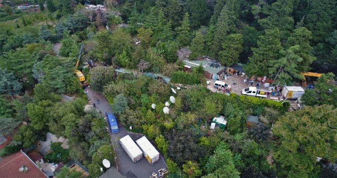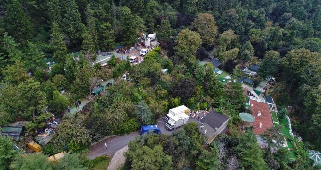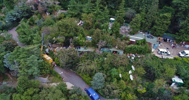 Adnan Oktarın Kandillideki villasına ait kaçak yapıların yıkılması için başlatılan çalışmalar havadan görüntülendi. Görüntülerde, kepçelerin içeri girdiği ve yıkım çalışması için hazırlıkların devam ettiği görülüyor.