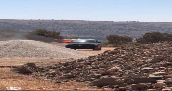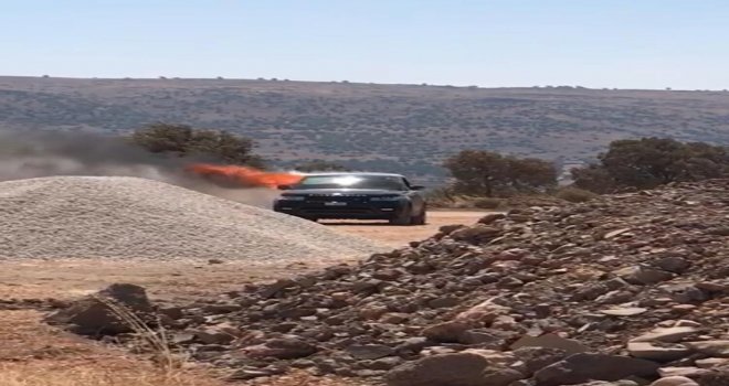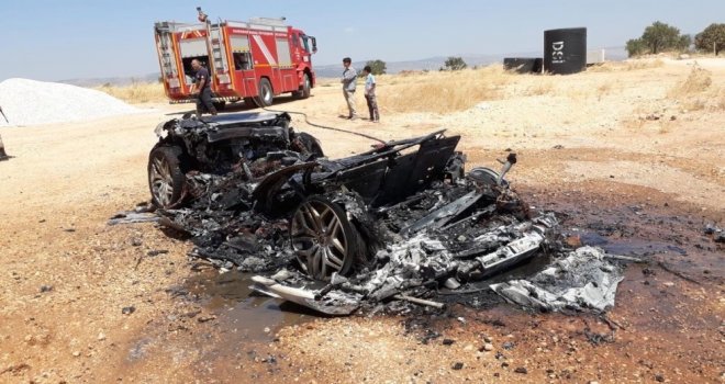 Kahramanmaraşın Pazarcık ilçesinde lüks cipin alev alev yanması korku dolu anlar yaşattı. Tavanı cam olan cip yanarak adeta eridi.