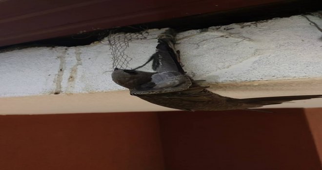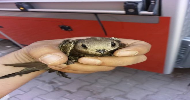 Apartmanın Çatısındaki Boşluğa Sıkışan Ebabil Kuşunu İtfaiye Kurtardı