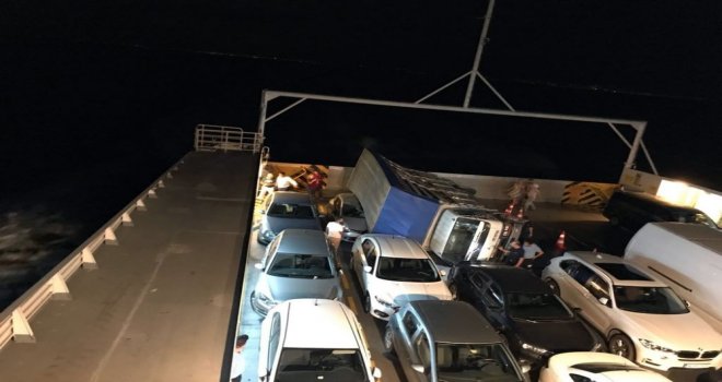 Yenikapı seferini yapan arabalı vapurdaki bir kamyon, dev dalgaların etkisiyle devrildi. Kamyon, arabalı vapurdaki otomobillerin üzerine devrilirken araçlarda kimsenin olmayışı olası bir faciayı önledi.