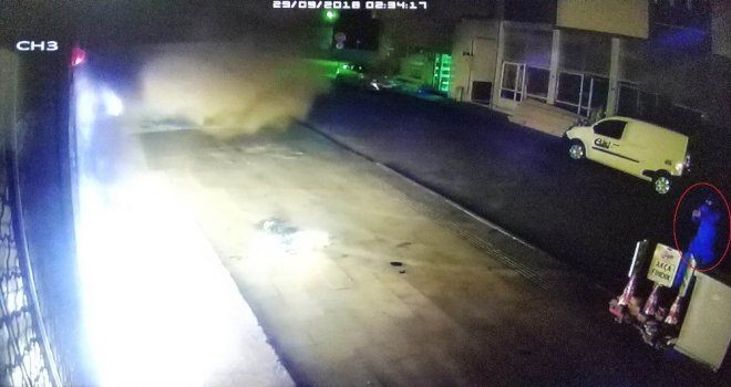 Samsunda maskeli kimliği belirsiz 2 kişi benzin dökerek ateşe verdiği iş yerinin karşısına geçip yangının cep telefonu ile fotoğrafını çekip olay yerinden kaçtı. Maskeli şahısların iş yerini kundaklama ve yangının fotoğrafını çekme anları güvenlik kamerası tarafından saniye saniye kaydedildi.