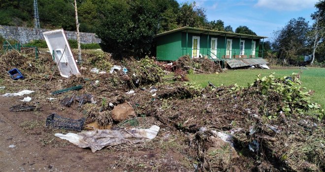 Beykozda dün yoğun yağışla birlikte Elmalı Deresinin taşmasıyla yaşanan sel sonrasında bölgedeki son durum havadan görüntülendi. Görüntülerde sel sularının yıkıp geçtiği istinat duvarları ve hasar gören seralar görülürken, belediye ekipleri ve vatandaşlar yaraları sarmaya çalışıyor