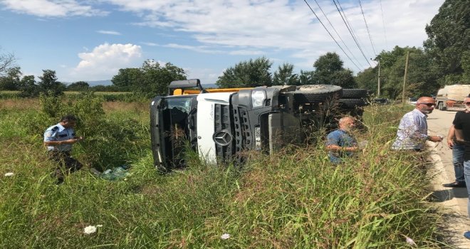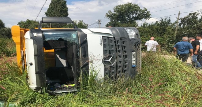Devrilen Hafriyat Kamyonunda Bulunan Sürücü Yaralı Kurtuldu