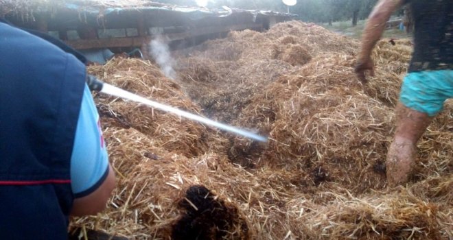 Balıkesirin Edremit ilçesinde bir samanlıkta çıkan yangın itfaiye ekipleri tarafından söndürüldü.