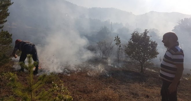 Henüz bilinmeyen bir nedenle kuru otların tutuşması sonucu çıkan yangın, rüzgarın etkisiyle kısa sürede büyümüş, civar köyler ve yüksek kesimlerden de gözlemlenen yangında dumanlar gökyüzünü sarmıştı.