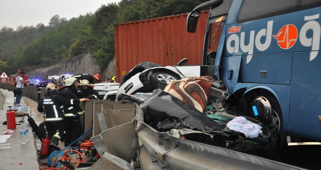 Eşi 43 yaşındaki Mehtap Soylu ile birlikte Ankaradan Balıkesirin Ayvalık ilçesine tatile giden Orhun Soylu idaresindeki 38 YG 652 plakalı özel otomobil, Mezitler bölgesinde meydana gelen zincirleme kazada, şehirlerarası yolcu otobüsü ile demir bariyerler arasında sıkışarak hurdaya döndü. Can pazarının yaşandığı kazada, görevliler ve vatandaşlar yardım için seferber oldu.