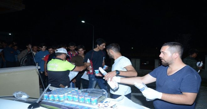 Kaçak göçmenler, daha sonra diğer işlemler için İlçe Emniyet Müdürlüğüne götürüldü. Burada, iki gündür uykusuz ve aç oldukları tespit edilen göçmenlere yemek verildi. Yemeklerini yiyen göçmenlerin bir kısmı Emniyet Müdürlüğünün bahçesinde uyudu.