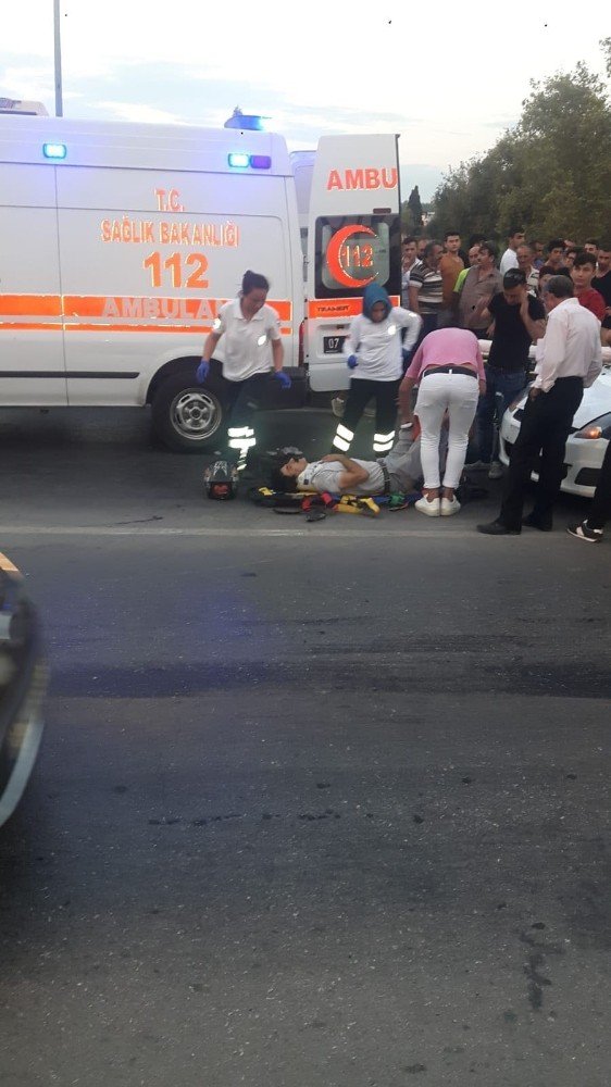 Antalyanın Manavgat ilçesinde meydana gelen trafik kazasında motosiklet sürücüsü yarlandı.