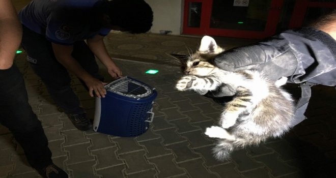 Olay, Osmangaziye bağlı Millet Mahhallesinde meydana geldi. Akşam saatlerinde işten eve dönen Eyüp Uslu, aracını park ettikten sonra motordan gelen kedi sesi üzerine ne yapacağını bilemedi. Onca aramaya rağmen sesini duydukları kediyi bulamayın Uslu, uzun süre hayvanın çıkmasını bekledi. Yaklaşık 4 saat boyunca miyavlayan kediyi çıkaramayan mahalle sakinleri durumu itfaiye ekiplerine bildirmekte buldu. Kısa sürede olay yerine gelen ekipler, yavru kediyi sıkıştığı 16 FE 242 plakalı kamyonetten kurtarmak için operasyon düzenlendi. Sesi takip eden ekip, yavru kedinin davlumbaz arasına sıkıştığını belirledi. Davlumbaz sökülünce motorun için kaçan yavru kedi, tam yakalandığı sırada arabanın altından çıkıp hemen yandaki 77 AAF 441 plakalı başka otomobilin içine girdi. Bu kez de ikinci araca operasyon düzenleyen ekipler, kısa sürede yavru kediyi çıkarıp taşıma çantasına koyarak barınağa götürdü.