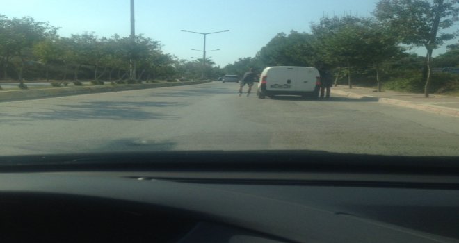Trafikte ilerleyen gençler aracın kırmızı ışıkta durmasıyla tehlikeli yolculuktan vazgeçerek gözden kayboldu.
