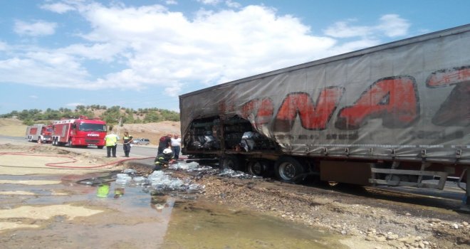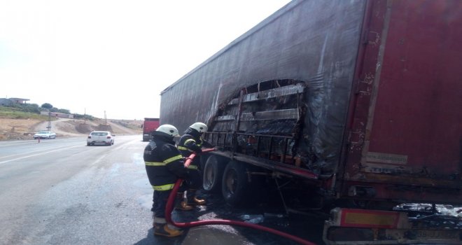 Seyir Halindeki Tırın Tekerleri Alev Aldı
