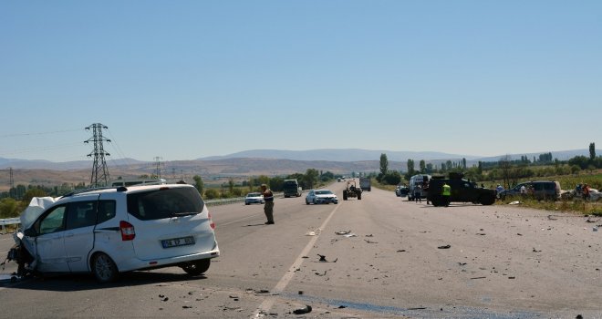 Kaza saat 11.00 sıralarında Akıncılar ilçesi Yağlıçayır köyü yakınlarında meydana geldi. Edinilen bilgiye göre, bir dinlenme tesislerine girmeye çalışan Mehmet Ş. (76) yönetimindeki 58 EP 653 plakalı hafif ticari araç ile Erzincan istikametine giden Mustafa Ç. (34) yönetimindeki 61 KR 138 plakalı otomobil çarpıştı. Kaza sonrası olay yerine çok sayıda ambulans sevk edildi. Kazada sürücüler ile birlikte otomobilde bulunan Zeynep Ç. (25), Muhammed Ç. (22), Esma Ç. (10) ve Samet Baran Ç. (8) yaralandı. Yaralılar 112 sağlık ekipleri tarafından Suşehri Devlet Hastanesine kaldırıldı. Durumu ağır olan otomobil sürücüsü ile Samet Baran Ç. Sivasa sevk edildi. Kazayla ilgili inceleme başlatıldı.