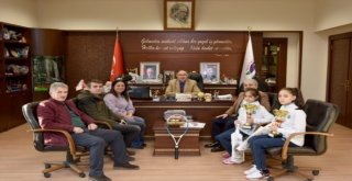 Ertuğrul Sağlam Spor Tesislerinde düzenlenen 9 Yaş Osmangazi Kış Kupası Tenis Grubunda Bursa birincisi olan 14 Eylül İlköğretim Okulu öğrencileri Doğa ve Deniz Aluz, Belediye Başkanı Sadi Kurtulanı ziyaret etti.