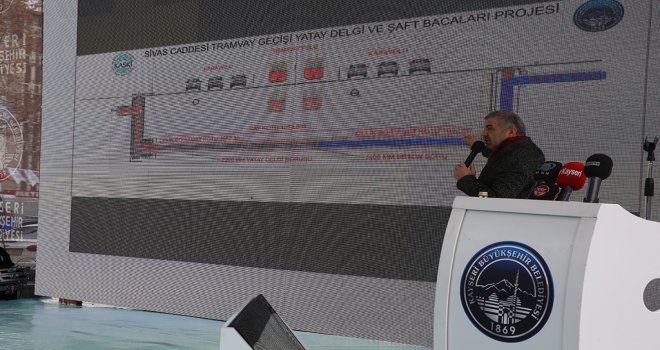 Büyükşehir Belediyesinin Kayserinin gelecek 50 yıllık sorununu çözecek olan ikinci ana kollektör hattı ve bu hattın Sivas Caddesi geçişi için gerçekleştirdiği programa Büyükşehir Belediye Başkanı Mustafa Çelikin yanı sıra Vali Şehmus Günaydın, AK Parti İl Başkanı Şaban Çopuroğlu, İlçe Belediye Başkanları, bürokratlar ve vatandaşlar katıldı.