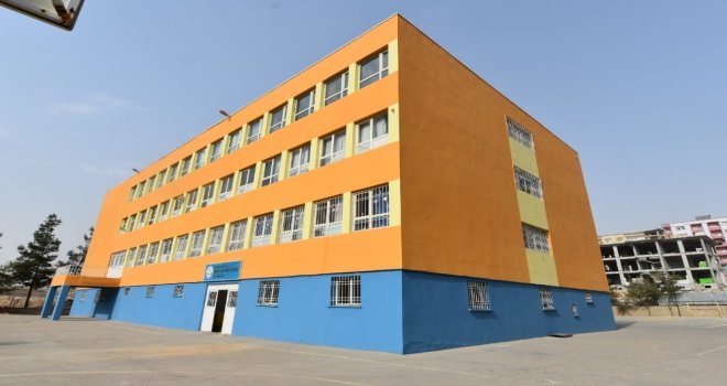Mardinin Artuklu İlçe Belediyesi, ilçede bulunan Tutaşı İlkokulunun duvarlarını boyadı.