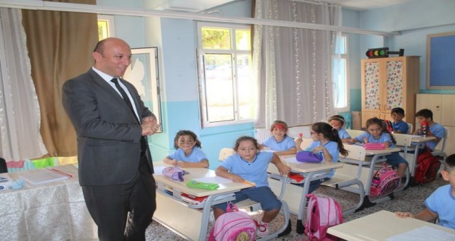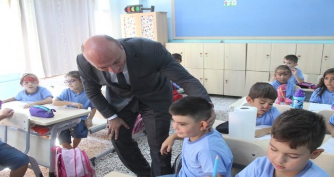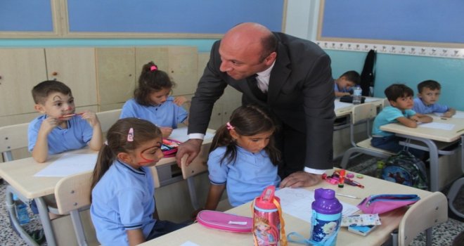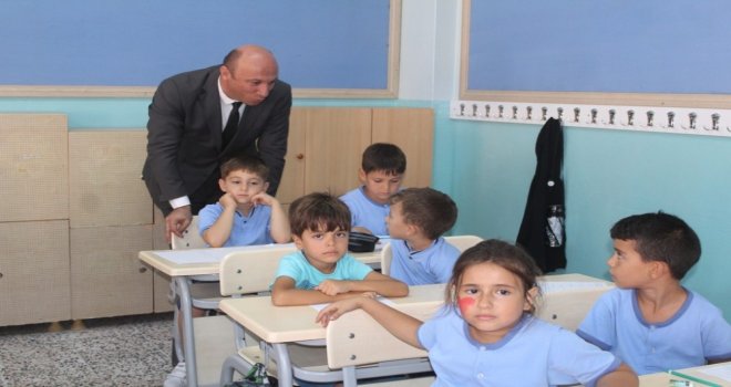 Yeni eğitim yılının ilk gününde, okulların sınıflarını ziyaret eden İlçe Milli Eğitim Müdürü Bahadır, özellikle okula ilk kez başlayan öğrencilerle sohbet etti.