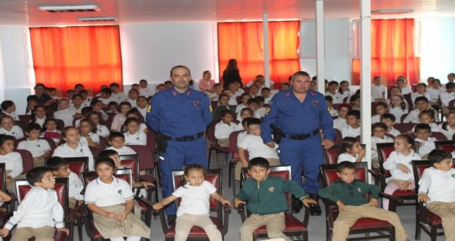 İzmirin Çeşme ilçesinde, İlçe Jandarma Komutanlığı trafik ekipleri ilkokul öğrencilerine trafik dersi verdi.