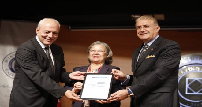 “Kurumsal Yönetim Derecelendirmesi” yaptıran Türkiyedeki ilk üniversite olan İstanbul Aydın Üniversitesi, bir derecelendirme dönemi bitmeden, 6 ay içinde notunu yükseltmeyi başararak bir ilke daha imza attı. “İş Dünyası ve Akademik Açıdan Kurumsal Yönetim Uygulamaları” başlıklı panel öncesinde, Saha Rating Yönetim kurulu Başkanı Sühan Seçkin tarafından takdim edilen sertifikayı üniversite adına Rektör Prof. Dr. Yadigâr İzmirli ve Mütevelli Heyet Başkanı Dr. Mustafa Aydın teslim aldı.