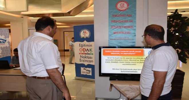 Erzincanda liseye geçiş sınavının ardından tercih danışma standı açıldı. Liselere geçiş tercihlerinde öğrenci ve velilere yarımcı olunması adına Erzincan Rehberlik Araştırma Merkezi Müdürlüğü tarafından Erzincan Park AVMde kurulan tercih masası yoğun ilgi görüyor.