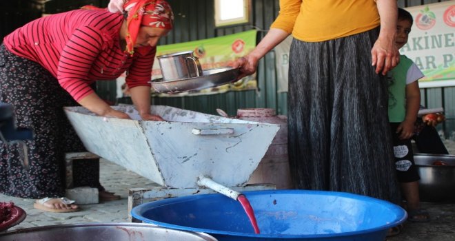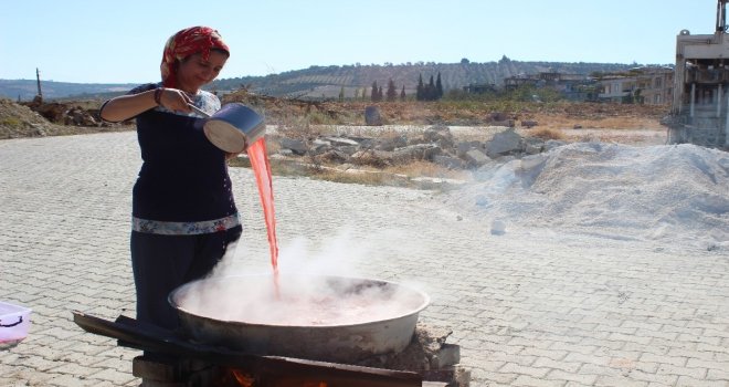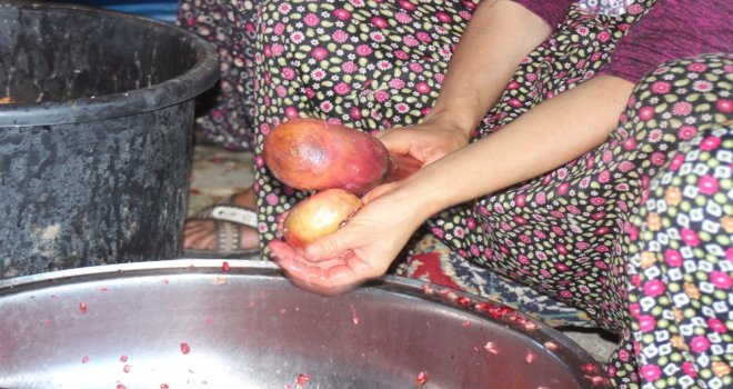 Gastronomi Kenti Hatayın eşsiz lezzetlerinden olan nar ekşisi, Altınözünde kadın kursiyerler tarafından yapıldı.