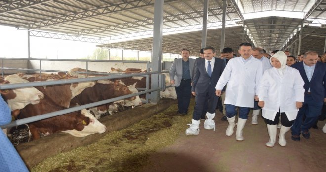 Bakan Pakdemirli, Malatyanın Yazıhan ilçesinde 502 düve üretim merkezinin açılış törenine katıldı. Burada tesisi gezen ve yetkililerden bilgiler alan Bakan Pakdemirli, 2 buzağının da kulaklarına küpelerini kendi taktı.