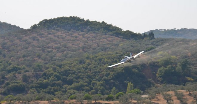Güney Marmara (Bandırma, Erdek, Marmara ilçeleri) zeytinliklerinde ise 15-17 Ağustos 2018 tarihlerinde birinci aplikasyon ilaçlama çalışmaları da tamamlandı. Bu çalışmalarda 67 bin 500 dekar alanda 6 bin 750 lt mahlül kullanıldı. Söz konusu birinci aplikasyon çalışmalarında 5 bin 400 lt ziray (cezbedici) ve bin 350 lt Alphacypermethrin ULV zirai ilaç kullanıldığı ve bu bağlamda ilaçlama uçağı 15 sorti gerçekleştirdi.