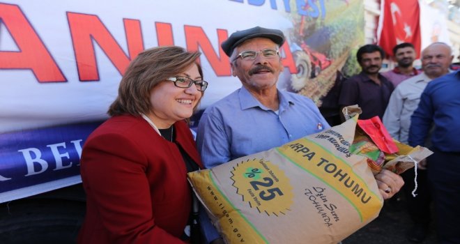 Konuşmaların ardından Başkan Fatma Şahin, çiftçilere arpa ve buğday tohumu dağıttı.