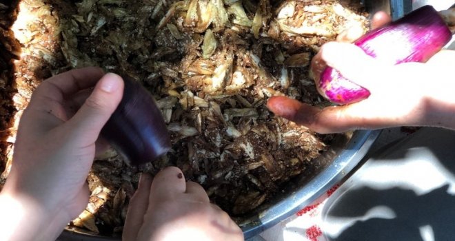 Kiliste, yeni mahsul patlıcan hasadıyla birlikte kurutmalık patlıcanlar oyulmaya başlandı.