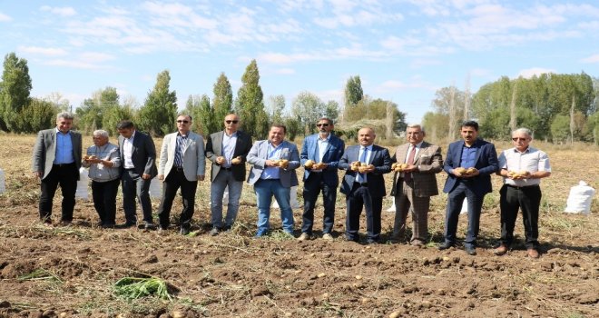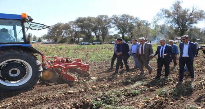 Konuşmanın ardından patates hasadı yapılarak toplanan patatesler çuvallara dolduruldu.