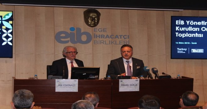 Türkiye İhracatçılar Meclisi Başkanı İsmail Gülle, Ege İhracatçı Birlikleri (EİB) Yönetim Kurulları Ortak Toplantısına katıldı. Ekonomideki gelişmeler sürecinde ihracatın önemine vurgu yapan Gülle, ihracatın artık sadece ihracatçının meselesi olmadığını, bir memleket meselesi haline geldiğini kaydetti. Türkiyenin büyümesi söz konusuysa bunun temelinde ihracat olacağını vurgulayan Gülle, ihracatta dünya pazarından yüzde 1 değil yüzde 1,5 alma hedefinde olduklarını kaydetti.