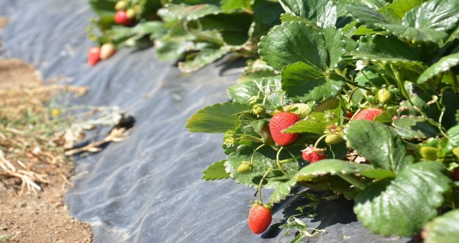 Önceden ot bitmeyen arazilerde; hormonsuz, kokusu, rengi, büyüklüğüyle özel çilek yetiştiren çiftçiler, Ekim ayı yaklaşmasına rağmen hasada devam ediyor.