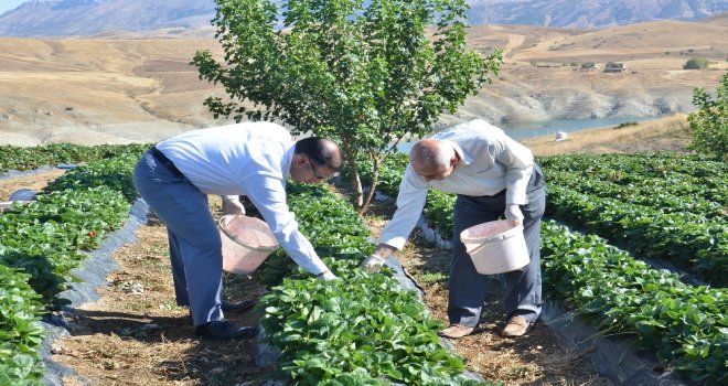 Köylerin boş bırakılmaması gerektiğinin altını çizen Ekinözü Kaymakamı Fatih Sayar, “Bulunduğumuz çilek tarlasındaki çiftçimiz, özü itibariyle inşaatçılık yapan bir kardeşimiz. Ama devletimizin bazı imkanlarının olduğunu duymuş. Başvuruda bulunmuş. 10 dönüm büyüklükteki tarlanın yarısını kendi öz sermayesiyle geri kalan yarısını da devletimizin verdiği destekle bu tarlaya sahip olmuş. Kendisi hariç, 10 aile buradan her sene ekmek yiyor. Bununla birlikte kendi ailesinin geçimini sağlıyor. Çok da memnun olduğunu ifade ediyor. Bu da bizi ziyadesiyle memnun ediyor. Bizim temel amacımız, vatandaşımızın ekonomik, sosyal refahıdır. Çiftçilerimizin refah içerisinde kendi evinde çorbasını kaynatabildiğini, kendi ayaklarının üzerinde durabildiğini gördüğümüz zaman biz de büyük bir memnuniyete neden oluyor. Köylerimiz boş. Köylerimizi boş bırakmayalım. Köylerimizi boş bırakırsak sadece bizim ülkemiz için değil dünya açısından da çok yakında gıda yönünden ciddi bir sorun yaşayacağız. Gençlerimiz, gelip tarlalarını işlesinler. Üretim her zaman bizim önceliğimiz. Devletimizin çok imkanları var, hibeleri var” ifadelerini kullandı.