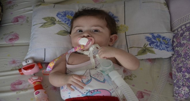 Denizlide doğuştan kalbi delik olan 11 aylık bebek, kalp ameliyatı yapılamadığı için hayatını cihaza bağlı şekilde devam ettirmeye çalışıyor. Kalbindeki 11 milimetrelik delik ve boğazı delinerek takılan solunum cihazıyla yaşama tutunmaya çalışan talihsiz bebek, tedavi için hayırseverlerden yardım bekliyor.