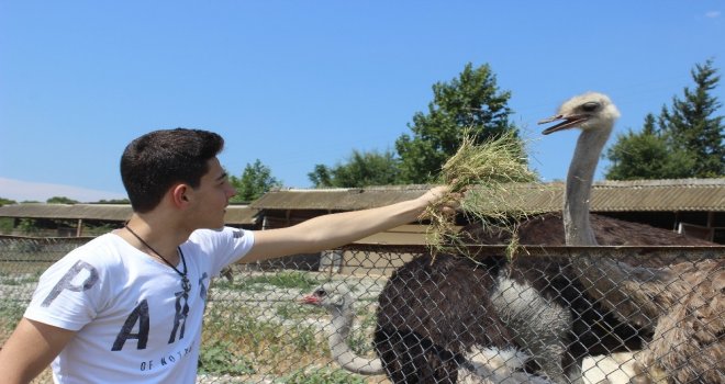 Üniversitedeki çiftliği ve üretim sürecini anlatan Uludağ Üniversitesi Ziraat Fakültesi Öğretim Üyesi Prof. Dr. İbrahim Ak, “Deve kuşu yetiştiriciliği Türkiyede ilk defa 1995 yılında Antalya Manavgatda başlamış olup, ikinci tesis Kırşehir Kamanda, üçüncüsü ise üniversitemizin bünyesinde Bursada kurulmuştur. 1997 yılından bu yana biz burada deve kuşu üretimini sürdürüyoruz. Üniversitemizde şu an 4 deve kuşu ailesi ile üretim yapıyoruz. Bir ailede 2 dişi, 1 erkek deve kuşu bulunuyor. Deve kuşları ilkbaharda yumurtlamaya başlıyor ve sonbahara kadar yumurtlama devam ediyor. Yumurtaları günlük olarak toplayıp serin bir odada bir hafta süreyle depoluyoruz. Yumurtaları haftalık olarak kuluçka makinesine yükleyerek 42 günün sonunda civcivlerimizi elde diyoruz. Bu süreçten sonra civcivlerimiz damızlık ve kasaplık olarak ayrılıyor. Kasaplık olacak civcivlerimiz yaklaşık 1 yaşında kesime uygun hale gelirken damızlık olacak civcivler erkeklerde 3, dişilerde 2 yıl sonra üretim olgunluğuna geliyor. Bir dişi deve kuşundan bir üretim sezonunda ortalama 50 yumurta ve bu yumurtalardan da yaklaşık 20-25 civciv elde edilmekte. Deve kuşu yetiştiriciliğinin en önemli sebebi sağlıklı kırmızı et üretmeleri ve kıymetli derileridir. Deve kuşu derisi timsah ve fil derilerinden sonra en değerli derilerden birisi olarak kabul edilmektedir. Deve kuşu derisi; cüzdan, kemer, ayakkabı, bot ve şapka gibi he türlü deri eşya yapımında kullanılmakta ve yüksek fiyatlarla alıcı bulmaktadır. Yağ ve kolesterol içeriği düşük sağlıklı eti özellikle belli yaşın üzerindeki fertlere ve kalp ve damar hastalığı olanlara tavsiye edilen bir kırmızı et. Biz deve kuşu yavrularını 500 liradan satıyoruz. Deve kuşu yumurtasını ise 100 liradan satmaktayız. Ülkemizde deve kuşu üretimi azaldığı için talep çok fazla taleplere yetişmekte zorlanıyoruz” dedi.