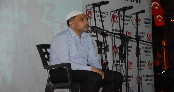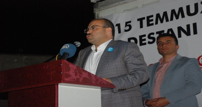 O akşam 251 şehit verdiğimiz o geceyi unutmamamız lazım unutturmamamız lazım. Bu yıl ikinci yılını kutladığımız 15 Temmuz Demokrasi ve Milli Birlik Gününü Bitlis meydanında bu coşkuyu hep birlikte yaşıyoruz. 15 Temmuz akşamı bir şarlatanın bir meczubun bir vatan haininin talimatlarını alarak bu milletin üzerine tanklarını sürdüler bombalar yağdırdılar. Hesaba katmadıkları bir şey vardı. O gece göğüslerini tanklara silahlara siper edenleri hesaba katmadılar. Evet o gece 251 şehit verdik. 2 binin üzerinde gazimiz oldu ama Allaha şükürler olsun ezanımızı susturmadık, bayrağımızı indirtmedik bu vatanımızı da böldürtmedik” dedi.