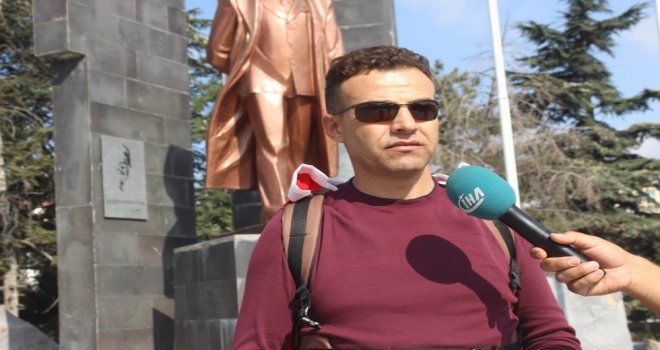 Özellikle yürüyüşüm Yaradılanı Yaradandan ötürü seven, vatan sevdalısı, bayrak aşığı, milletin hizmetkarı, ümmetin derdiyle dertlenen, tüm insanlığın barış ve kardeşlik umutlarını karşılığı, dünya beşten büyüktür diyen Başkan Recep Tayyip Erdoğan için. Tüm bu duygular içinde vatanımı, devletimi, bayrağımı, milletimi ve sevdalısı olduğum ümmetin lideri Recep Tayyip Erdoğanı çok seviyorum dedi.