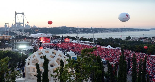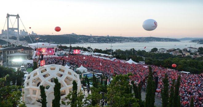 15 Temmuz Milli Birlik ve Demokrasi Günü kapsamında düzenlenen miting için yüz binlerce vatandaş 15 Temmuz Şehitler Köprüsüne akın etti. Havanın kararmasıyla artan kalabalık adeta insan seline dönüştü. Ellerinde Türk bayraklarıyla Cumhurbaşkanı Recep Tayyip Erdoğanın alana gelmesini bekleyen vatandaşlar görsel bir şölen oluşturdu.