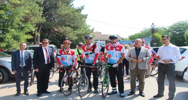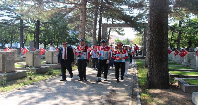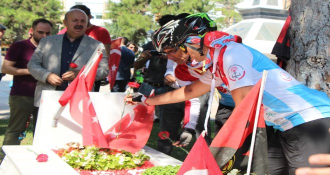 15 Temmuz Şehitleri için Konyadan İstanbula bisikletle yola çıkan öğretmenler, Eskişehirdeki programları kapsamında Eskişehir Hava Şehitliğini ziyaret ederek şehitleri andı.