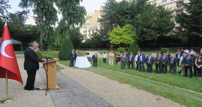 Pariste 15 Temmuz darbe girişiminin ikinci yılı dolayısıyla Türkiyenin Paris Büyükelçisi İsmail Hakkı Musanın ev sahipliğinde büyükelçilik rezidansında anma töreni düzenlendi.