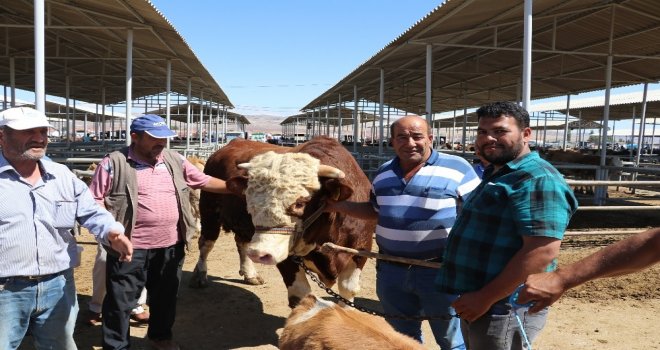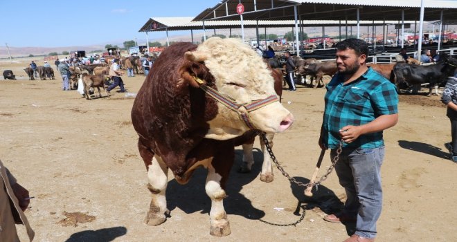 Sivasın Şarkışla İlçesinde kurulan İç Anadolu bölgesinin en büyük hayvan pazarında, 1.5 tonluk kurbanlık boğa bir saat içerisinde 21.5 bin TLye alıcı buldu.