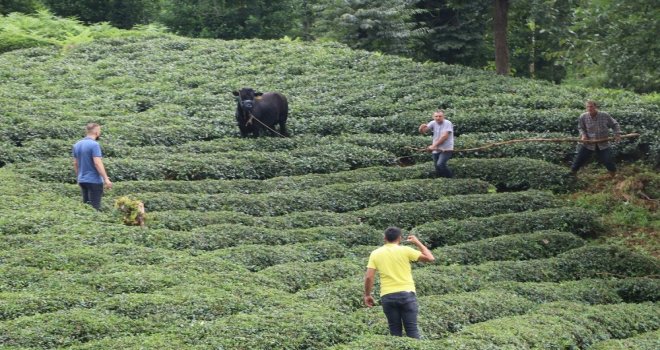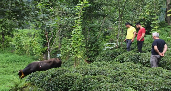 Rizede sahibini ve kasabı yaralayarak çay bahçesine kaçan boğa 2 saat sonra yakalanabildi.