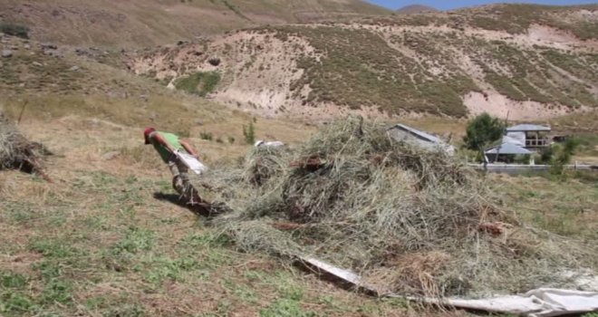2000 Rakımlı Köyde Otları Branda İle Taşıyorlar