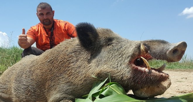 Denizlinin Çal ilçesinde yaklaşık 1 aydan bu yana dadandığı tarım arazilerine zarar veren yaklaşık 250 kilogram ağırlığındaki yaban domuzu av sezonunun açılması ile Selçuk Poslu isimli avcı tarafından kafasından tek kurşunla vurularak avlandı.