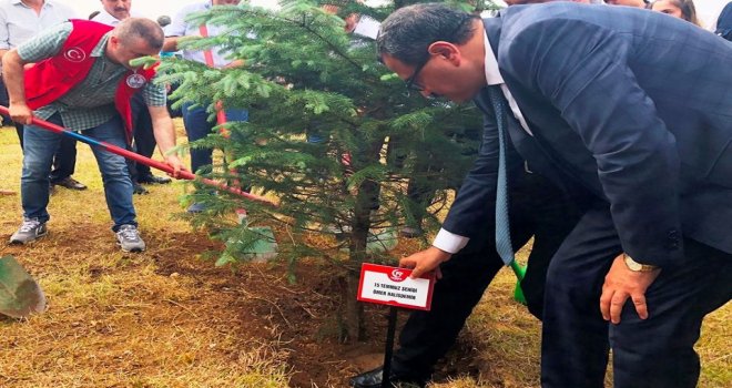 15 Temmuz Şehitleri Hatıra Ormanına 10 adet mavi ladin, 20 adet akçaağaç, 20 adet çınar, 20 adet palmiye, 30 adet zakkum, 20 adet at kestanesi, 20 adet batı ladini, 20 adet doğu ladini, 20 adet erik, 20 adet taflan, 20 adet kiraz ve 21 adet sedir fidanı dikildi