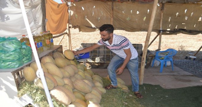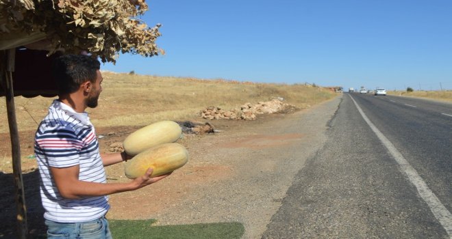 Midyat yolu üzerinde kurdukları tezgahlarda yılın üç ayı Midyata özgü “susuz kavun” satan çiftçiler, elde ettikleri gelirle bir yıl boyunca ailelerin geçimini sağlıyor.