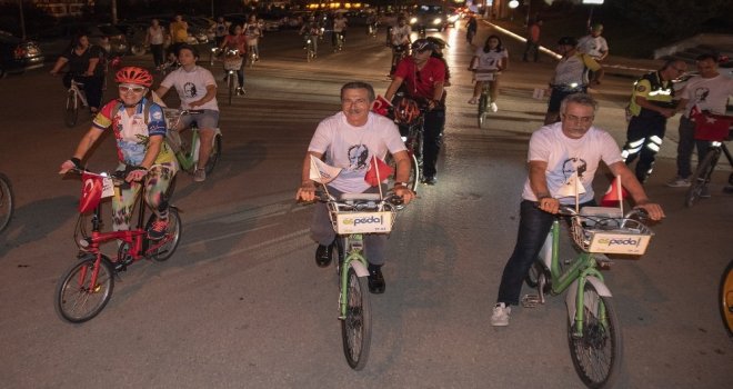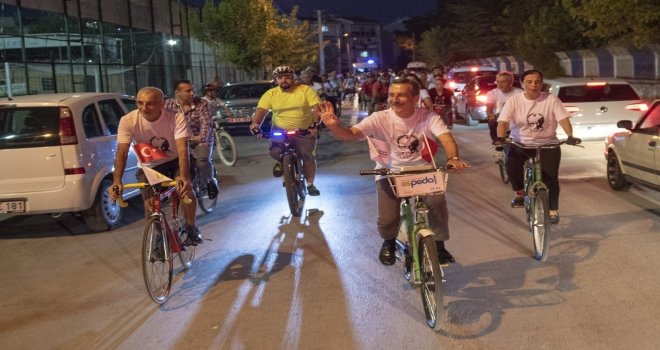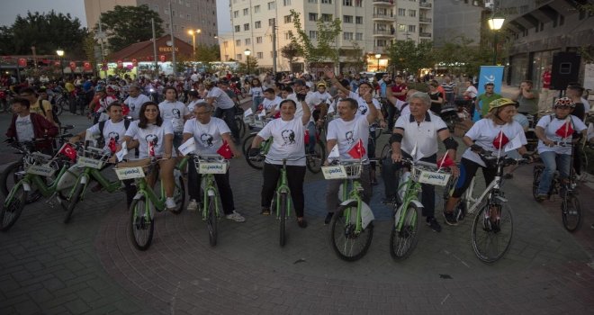 Konuşmaların ardından Başkan Ataç, Milletvekili Süllü ve İl Başkanı Akman ile birlikte yüzlerce vatandaş, Türk Bayrakları ile süslenmiş bisikletlerine binerek şehir merkezinden konser alanına geçti. İsmet İnönü 1 Caddesi - NEO Plus AVM güzergahında gerçekleşen korteje, akülü araçları ile katılan engelli vatandaşlar da etkinliğe renk kattı.