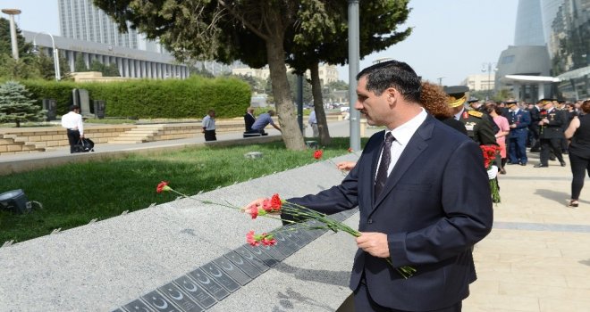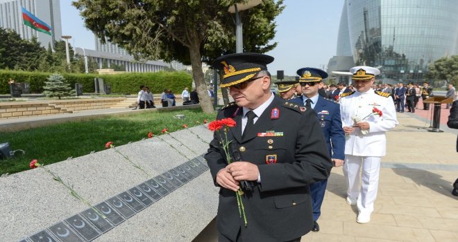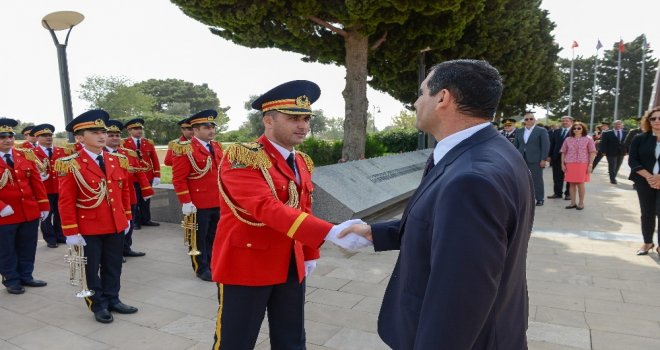 Daha sonra Azerbaycan Şehitliği de ziyaret edilerek şehit mezarlarına karanfil bırakıldı.
