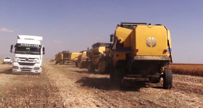 Muşta Yıldız Tarım İşletmesinde 33 bin dönüm üzerinde ekimi yapılan aspir bitkisinin hasadına başlandı.